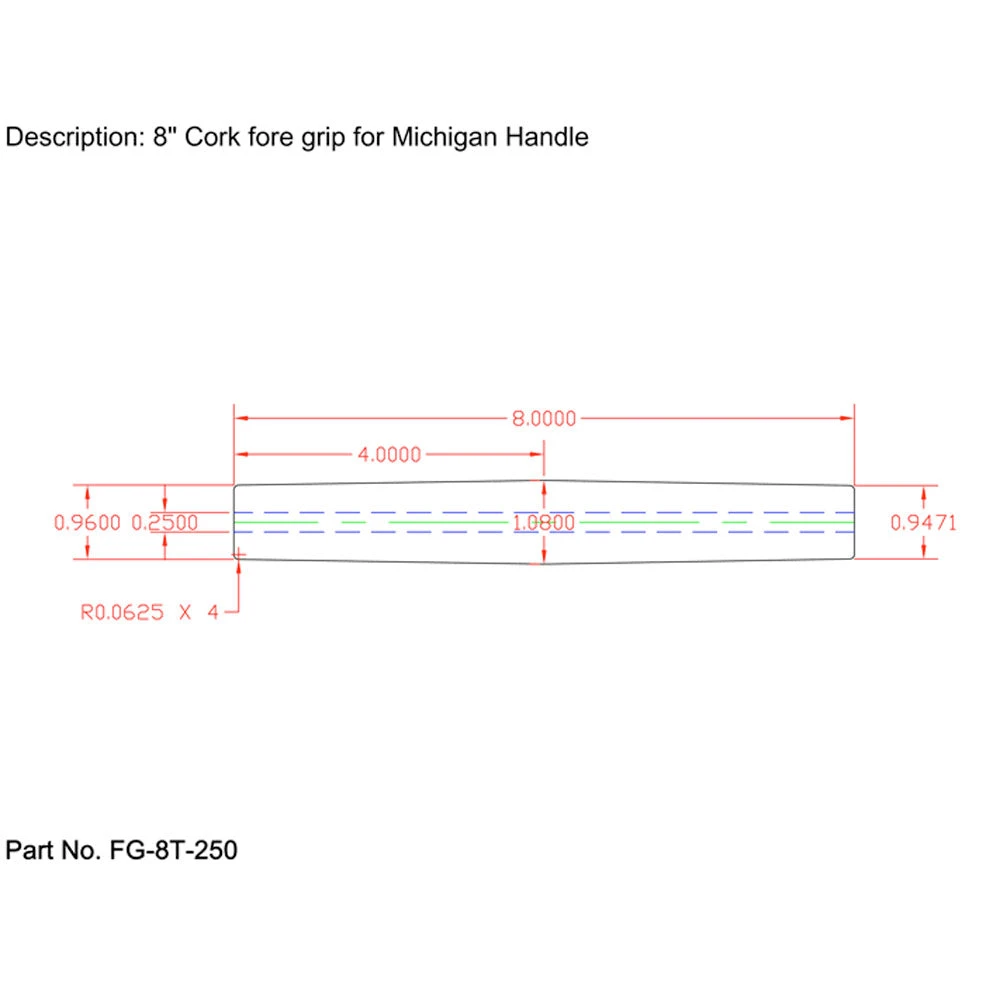 CRB Components 8″ Tapered Cork Foregrip For Michigan Handle – Super Grade