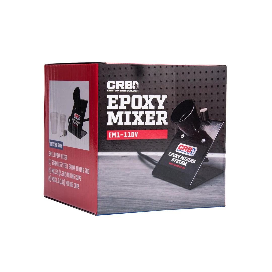 Use the new CRB Epoxy Mixing System for perfectly mixed, bubble-free epoxy. The EM1 features an 18RPM mixing motor with 6ft power cord, plug and switch mounted on a powder coated steel base, and non-slip foot pads.