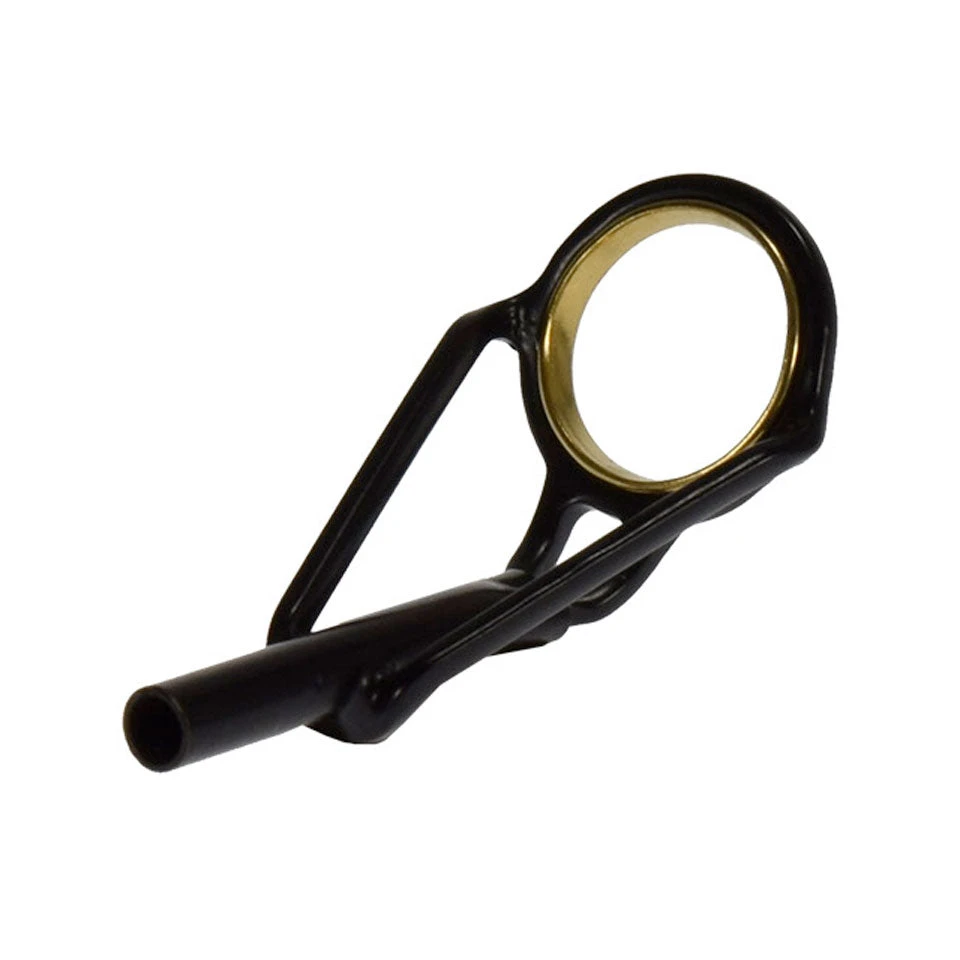 Stamped stainless steel frame tops for casting and spinning rods. TiGold ring.